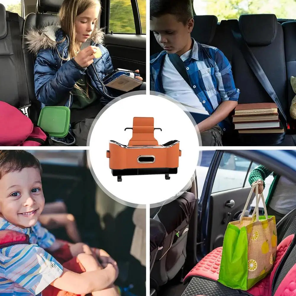 Tablet, içecekler, atıştırmalıklar... Çok Fonksiyonlu Arka Saklama Kutusu ile araç içi konforunuzu bir üst seviyeye taşıyın. 🚗✨